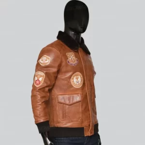 Men’s Aviator Bomber Leather Shearling Collar Jacket