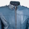NS Leather Jackets makes leather pieces that last longer than trends. They handpick high-quality hides to create jackets that improve over time. The Men’s Band Collar Blue Bomber Leather Jacket gives you a modern twist on the classic bomber in a rich blue shade. It develops its character through smooth leather, while the band collar provides a contemporary element. You’ll love using this for nights out, casual weekends, or just hanging around looking effortlessly cool.
