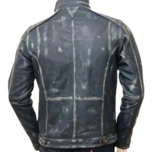 Mens Blue Waxed Cafe Racer Style Leather Jacket