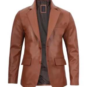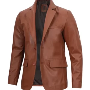 Men’s Cognac Brown Leather Blazer