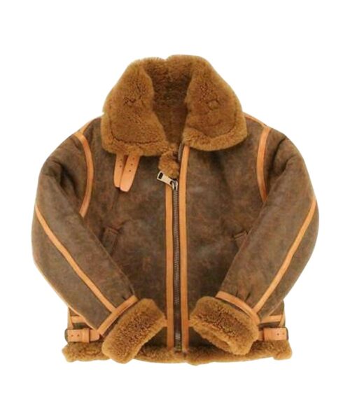 The Mens RAF Aviator Brown Shearling Jacket is more than just winterwear — it’s a statement. Crafted from premium distressed sheepskin leather, this rugged piece exudes vintage charm and masculine appeal. With a plush shearling lining, cozy fur collar, and a smooth zipper closure, it’s built to keep you warm while turning heads.